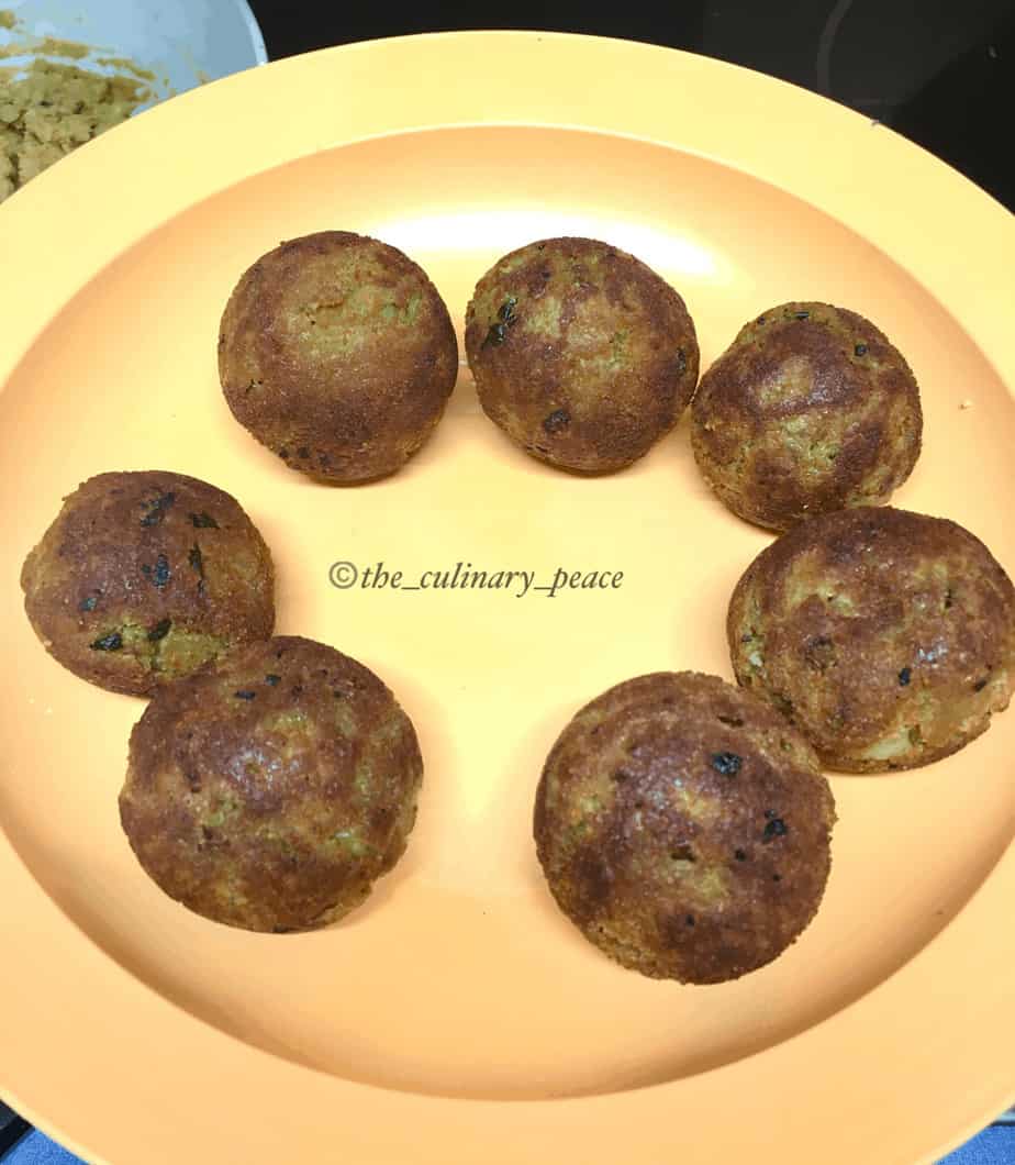 4. Add 2 drops of oil to each of the cavities of your paddu/appe/paniyaram pan. Place the koftas in them, drizzle some oil, cover a lid and cook on low-medium flame until it turns brown. Flip carefully and cook well until all the sides turn brown. This may take time, but do not increase the heat, as it has to cook well inside. Once done, transfer them onto a plate.