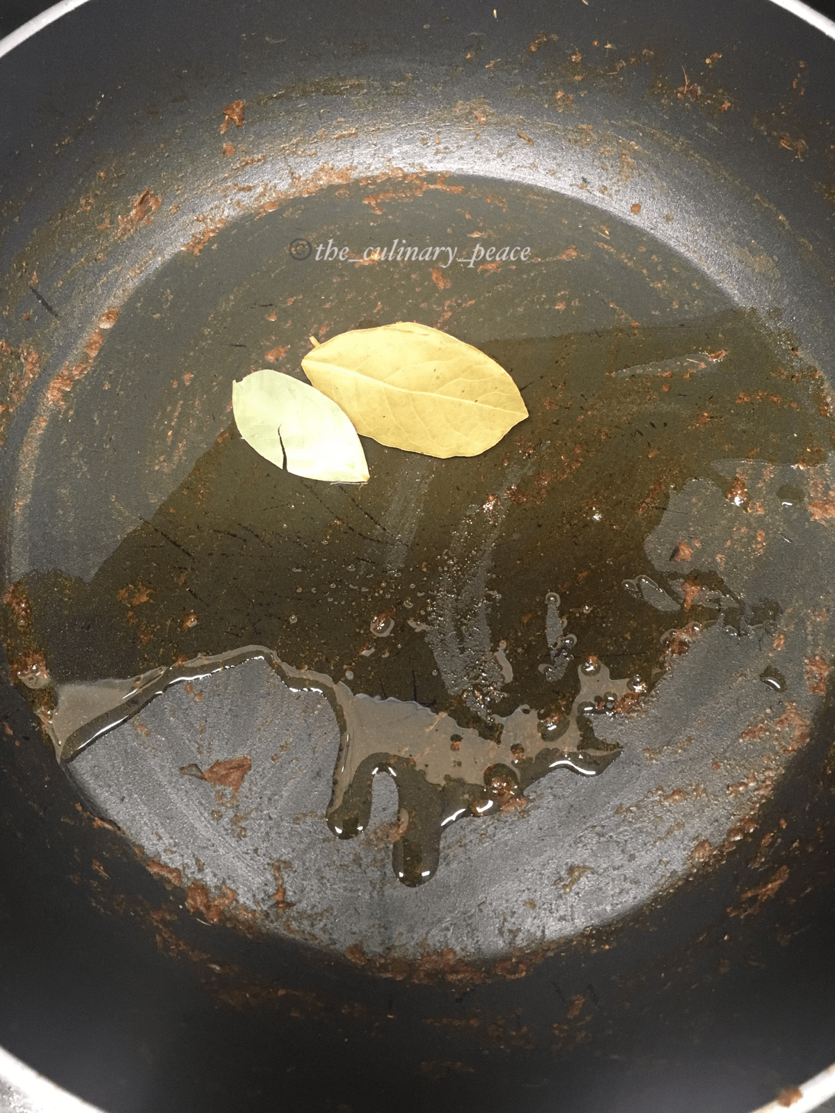 - To the same pan, add 2 tsps oil. Once it turns hot, add bay leaves and saute until they turn light brown.