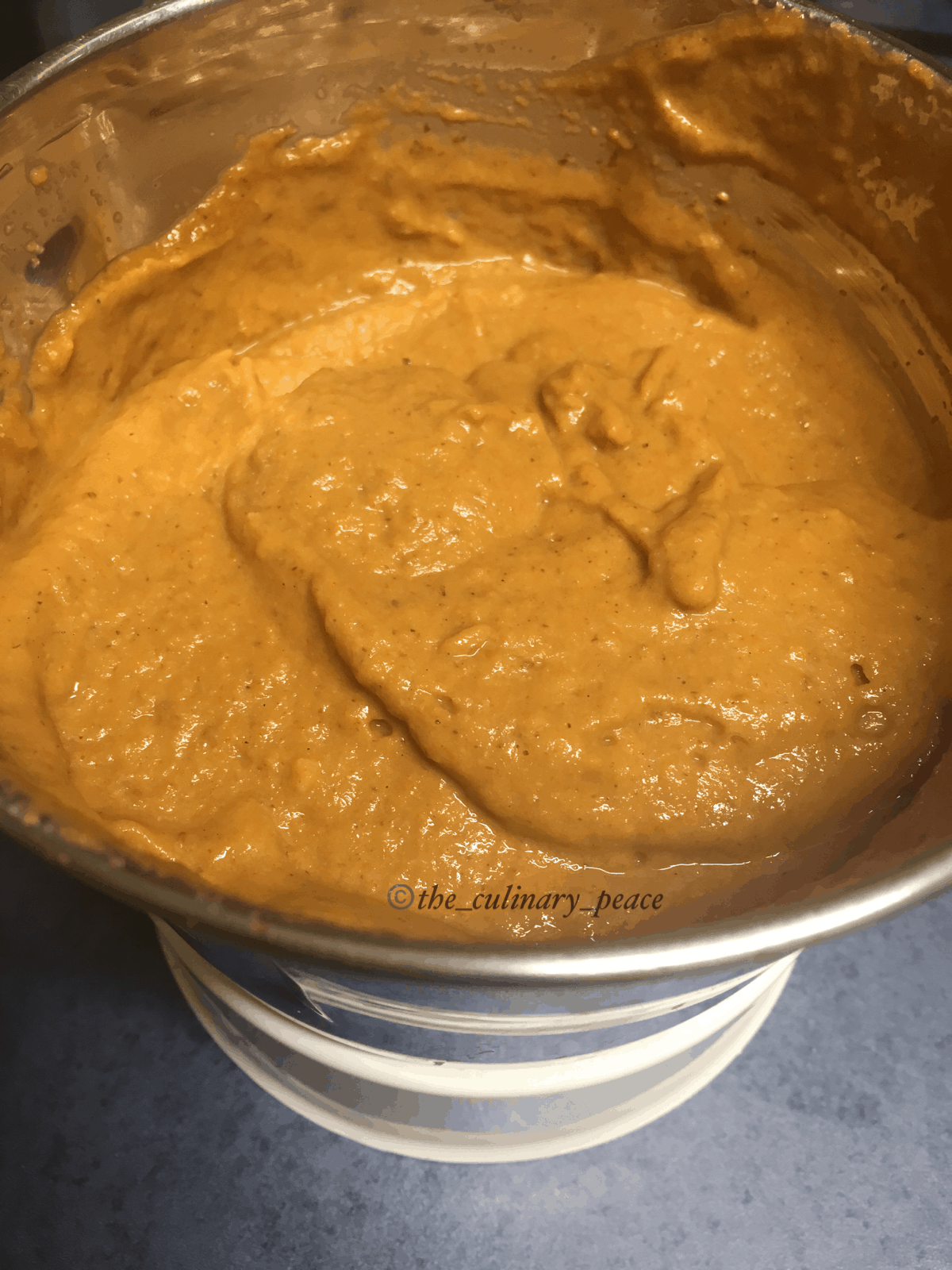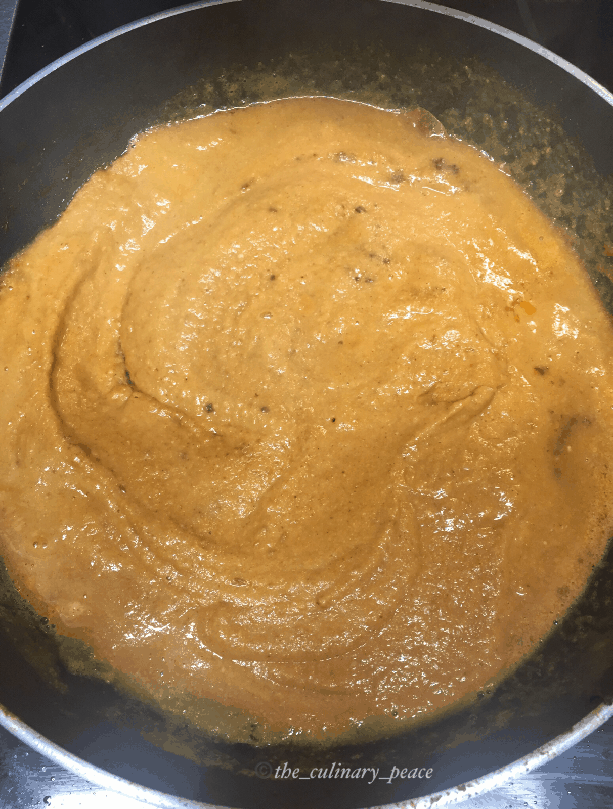 3. Once this cools down, transfer this to a mixer jar, add some vegetable stock and blend to a smooth paste.