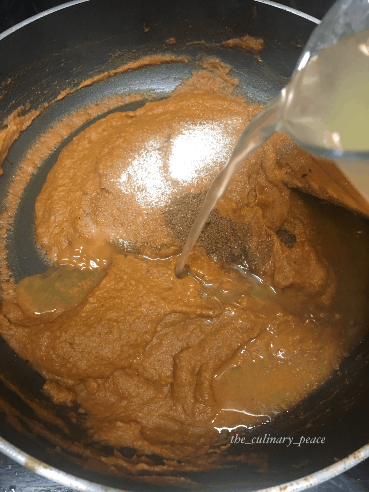- Once the mixture turns thick and has simmered well, add salt, jaggery/sugar, garam masala, curd, and vegetable stock.