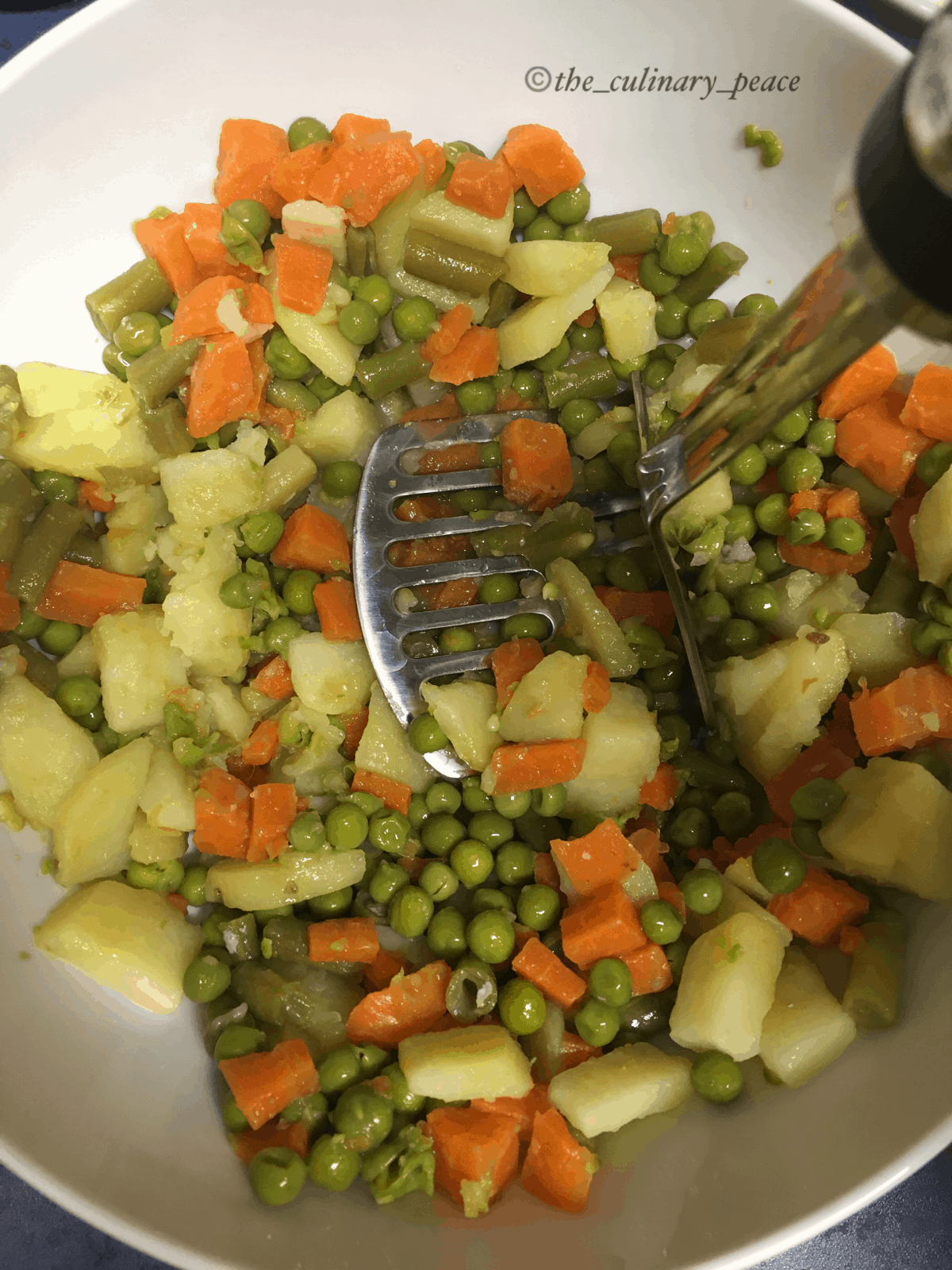 - Once cooked, drain the water completely and let the veggies cool down slightly. To remove all the moisture content I recommend you keep it in the freezer for 15-20 minutes. Don't worry, veggies will not get frozen so soon.