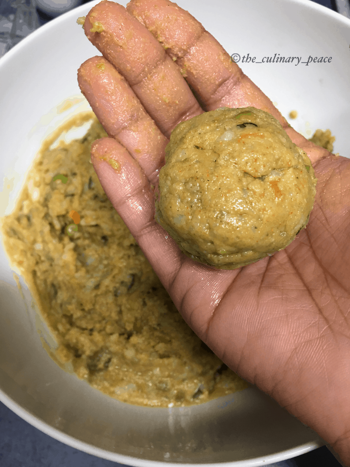 - By the time the pan gets hot, start shaping the vegetable poha mixture to balls, by greasing your palm with oil. Make sure to size them slightly smaller than the size of your paddu pan cavity, so that it can cook well.
