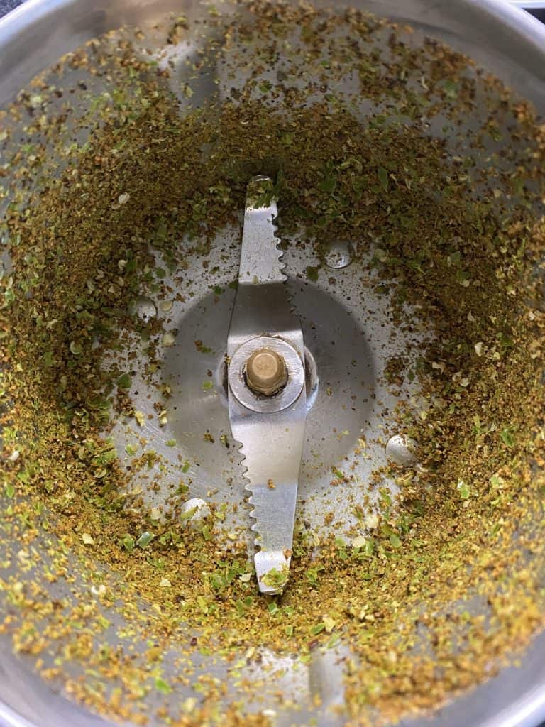 • Blend everything well adding 2 to 3 tablespoon water. Use as little water as possible to get a thick chutney consistency.