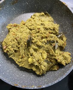 • After about 15 minutes, the water content in the chutney is removed and the chutney turns slightly dry and coarse.