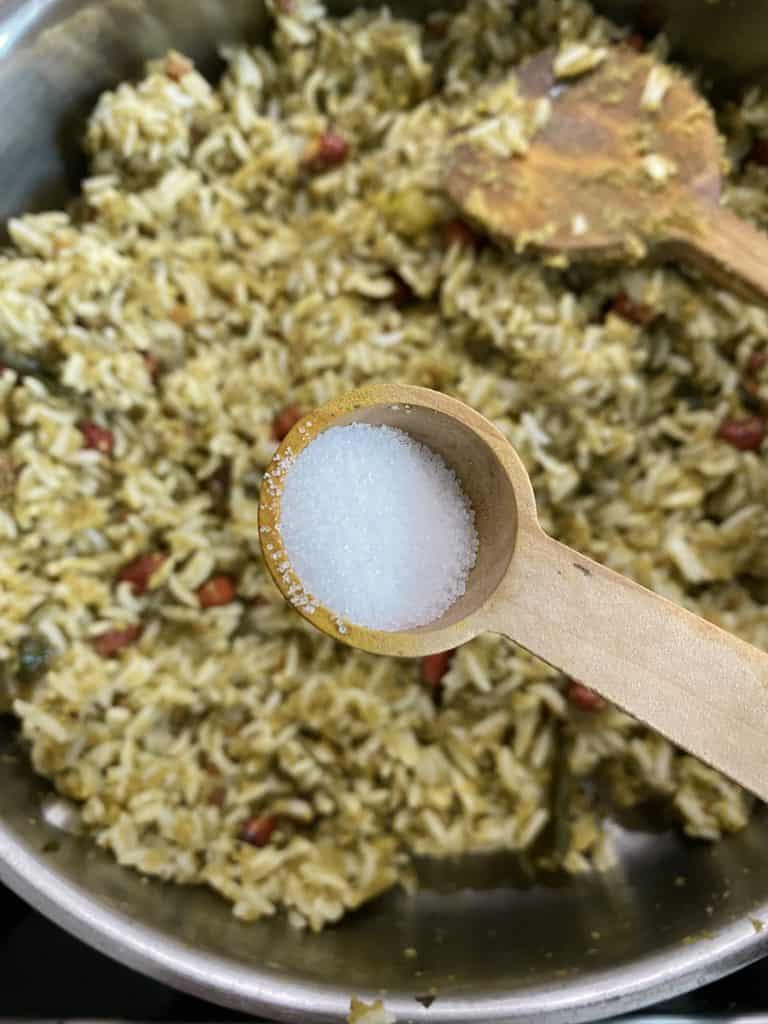 Also, if you have not used tamarind in the chutney and if the rice is not sour enough, you can also add some lemon juice.