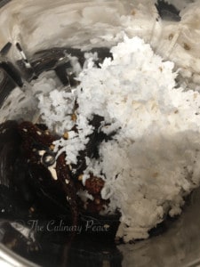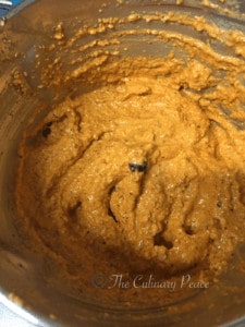 - Once the roasted spices cool down, add grated coconut (refer notes 4), some water and blend to a smooth paste.